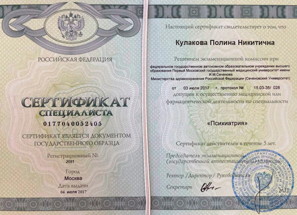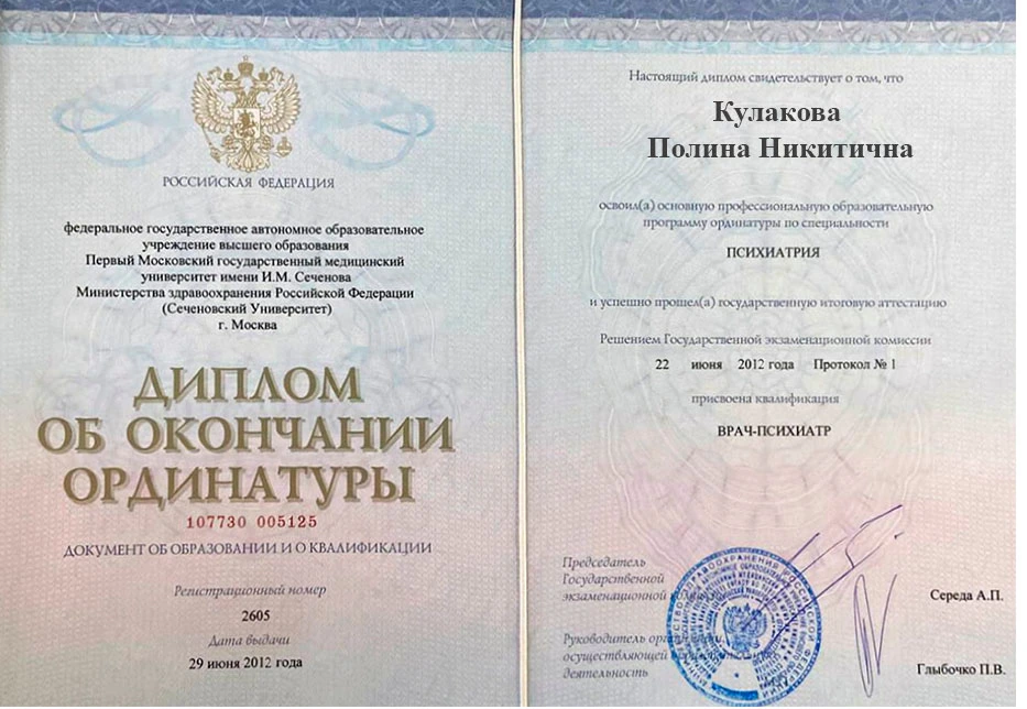 ВыходнойПсихотерапевт Кулакова Полина Никитична специализируется на лечении аддиктивных расстройств (алкогольная зависимость, переедание), а также таких состояний, как неврозы, депрессии, тревожно-депрессивные расстройства, бессонница, панические атаки и неврастения. В своей практике она также применяет методы активной визуализации и символическую драматерапию, которые способствуют глубинной проработке эмоциональных и психологических проблем.